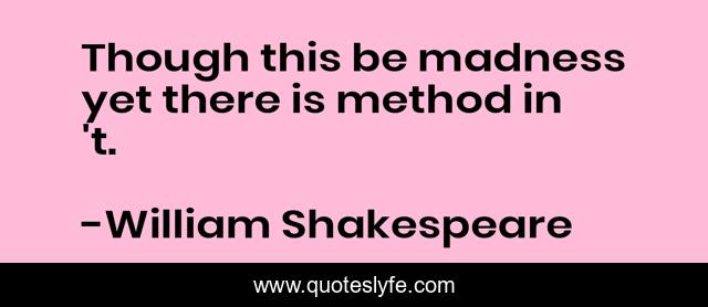 This page presents the quote "Though this be madness yet there is method in 't.". Author of this quote is William Shakespeare. .