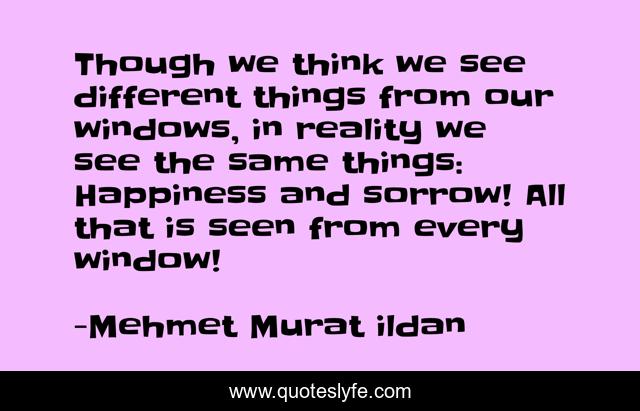 This page presents the quote "Though we think we see different things from our windows, in reality we see the same things: Happiness and sorrow! All that is seen from every window!". Author of this quote is Mehmet Murat ildan. This quote is about windows, sorrow, reality, window, murat-ildan-words, happiness,.