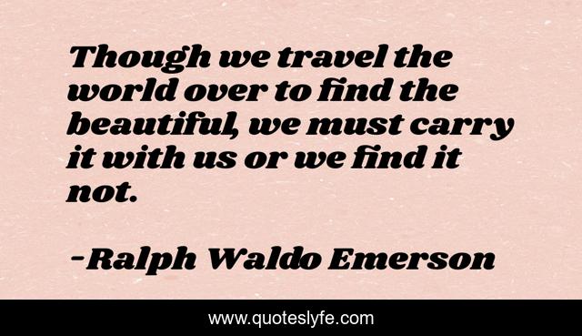 This page presents the quote "Though we travel the world over to find the beautiful, we must carry it with us or we find it not.". Author of this quote is Ralph Waldo Emerson. This quote is about art, beauty,.