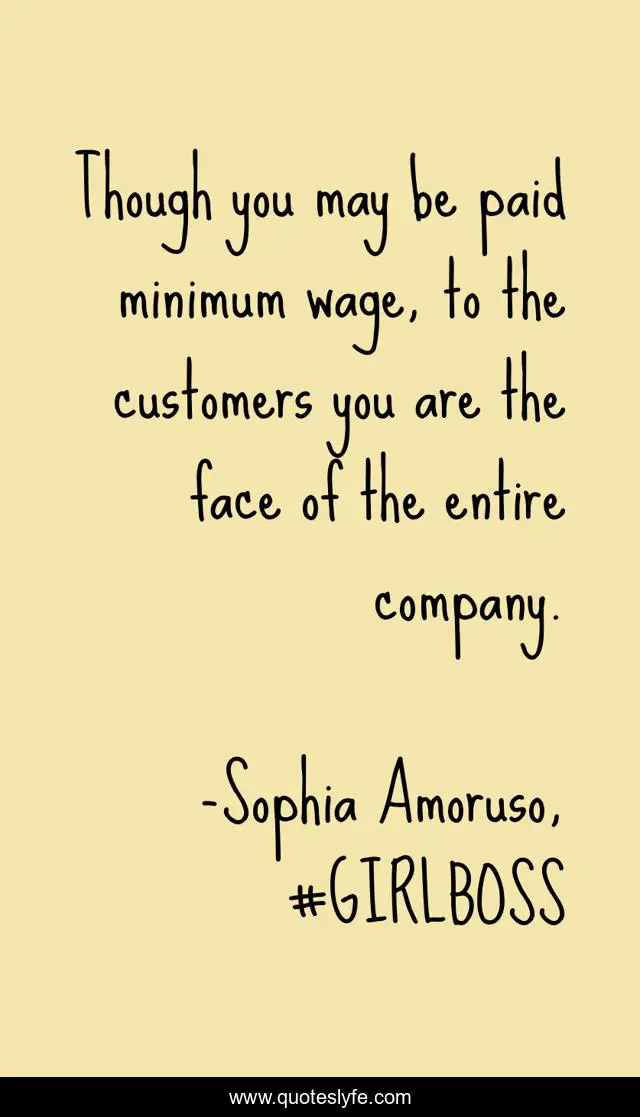 This page presents the quote "Though you may be paid minimum wage, to the customers you are the face of the entire company.". Author of this quote is Sophia Amoruso, #GIRLBOSS. .