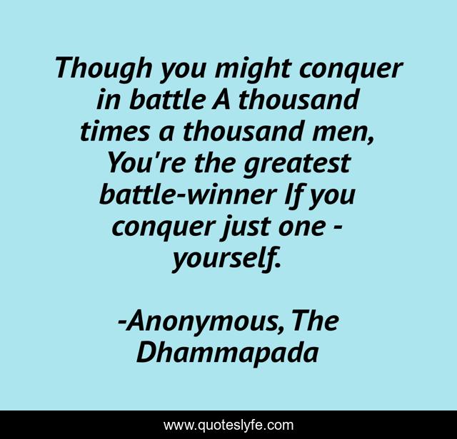 "Anonymous, The Dhammapada Quotes." Quoteslyfe.com, 2025. Fri. 05 Dec. 2025. <https://www.quoteslyfe.com/quote/Though-you-might-conquer-in-battle-A-160445>.