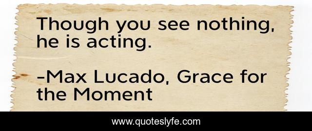 This page presents the quote "Though you see nothing, he is acting.". Author of this quote is Max Lucado, Grace for the Moment. .