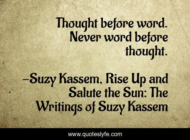 "Suzy Kassem, Rise Up and Salute the Sun: The Writings of Suzy Kassem Quotes." Quoteslyfe.com, 2025. Sat. 06 Dec. 2025. <https://www.quoteslyfe.com/quote/Thought-before-word-Never-word-before-thought-163023>.