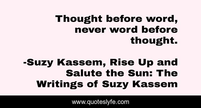 "Suzy Kassem, Rise Up and Salute the Sun: The Writings of Suzy Kassem Quotes." Quoteslyfe.com, 2025. Sun. 07 Dec. 2025. <https://www.quoteslyfe.com/quote/Thought-before-word-never-word-before-thought-22078>.