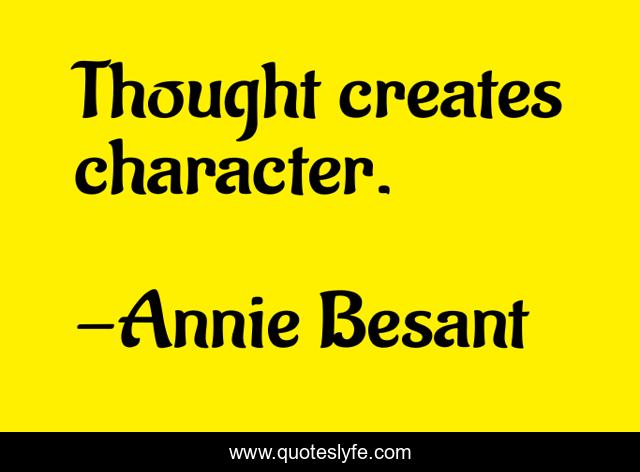"Annie Besant Quotes." Quoteslyfe.com, 2025. Sun. 07 Dec. 2025. <https://www.quoteslyfe.com/quote/Thought-creates-character-173438>.