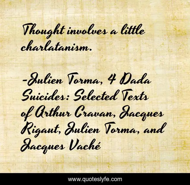 "Julien Torma, 4 Dada Suicides: Selected Texts of Arthur Cravan, Jacques Rigaut, Julien Torma, and Jacques Vaché Quotes." Quoteslyfe.com, 2025. Fri. 05 Dec. 2025. <https://www.quoteslyfe.com/quote/Thought-involves-a-little-charlatanism-192046>.