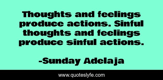 This page presents the quote "Thoughts and feelings produce actions. Sinful thoughts and feelings produce sinful actions.". Author of this quote is Sunday Adelaja. This quote is about sinful, produce, actions, thoughts, feelings,.