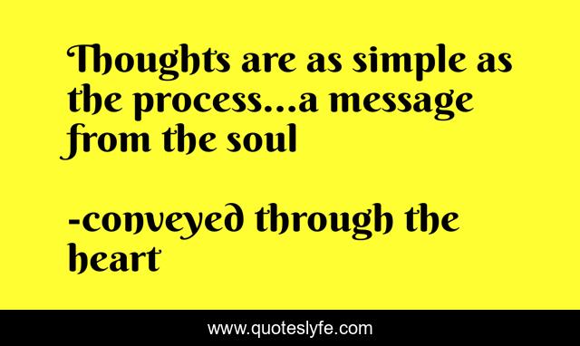 This page presents the quote "Thoughts are as simple as the process…a message from the soul". Author of this quote is conveyed through the heart. .