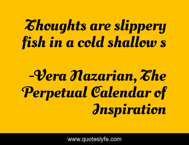 "Vera Nazarian, The Perpetual Calendar of Inspiration Quotes." Quoteslyfe.com, 2025. Sat. 06 Dec. 2025. <https://www.quoteslyfe.com/quote/Thoughts-are-slippery-fish-in-a-cold-137718>.