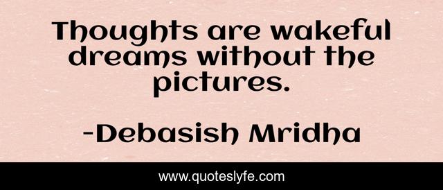 This page presents the quote "Thoughts are wakeful dreams without the pictures.". Author of this quote is Debasish Mridha. This quote is about wakeful-dreams, philosophy, debasish-mridha, quotes, dreams, inspirational, enthusiasm, debasish-mridha-m-d, thoughts,.