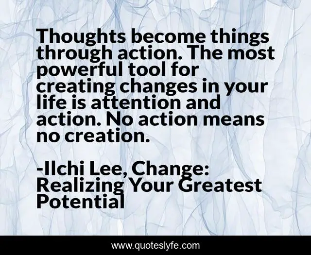 "Ilchi Lee, Change: Realizing Your Greatest Potential Quotes." Quoteslyfe.com, 2025. Sat. 06 Dec. 2025. <https://www.quoteslyfe.com/quote/Thoughts-become-things-through-action-The-most-253356>.