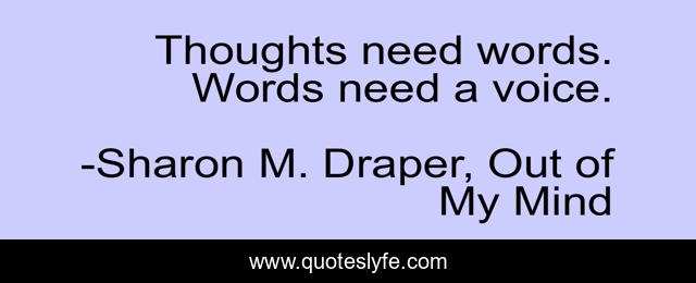 "Sharon M. Draper, Out of My Mind Quotes." Quoteslyfe.com, 2025. Fri. 05 Dec. 2025. <https://www.quoteslyfe.com/quote/Thoughts-need-words-Words-need-a-voice-113331>.