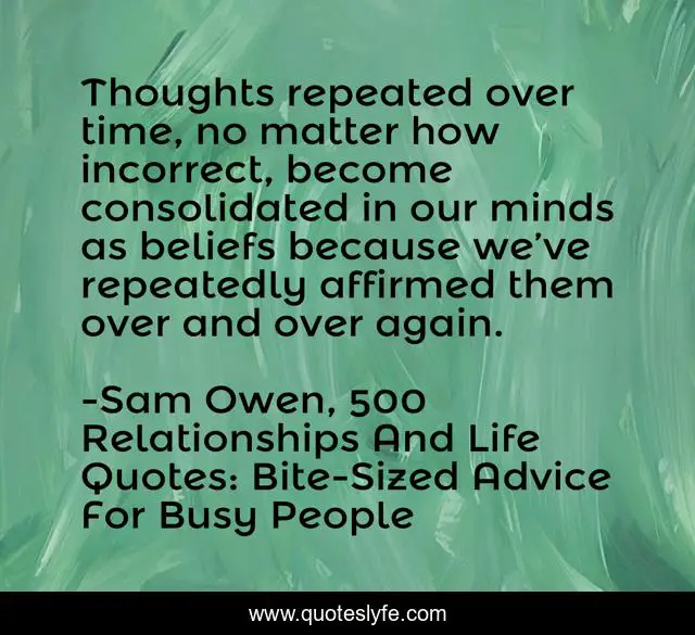"Sam Owen, 500 Relationships And Life Quotes: Bite-Sized Advice For Busy People Quotes." Quoteslyfe.com, 2025. Sat. 06 Dec. 2025. <https://www.quoteslyfe.com/quote/Thoughts-repeated-over-time-no-matter-how-86975>.