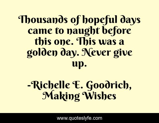 "Richelle E. Goodrich, Making Wishes Quotes." Quoteslyfe.com, 2025. Mon. 08 Dec. 2025. <https://www.quoteslyfe.com/quote/Thousands-of-hopeful-days-came-to-naught-139879>.