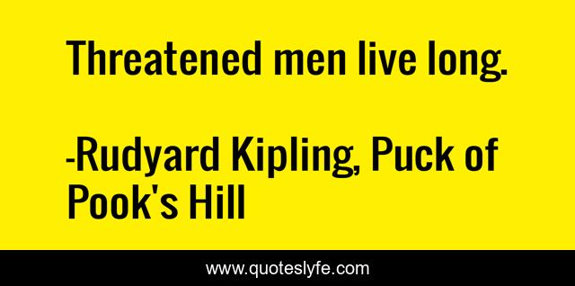"Rudyard Kipling, Puck of Pook's Hill Quotes." Quoteslyfe.com, 2025. Mon. 08 Dec. 2025. <https://www.quoteslyfe.com/quote/Threatened-men-live-long-22231>.