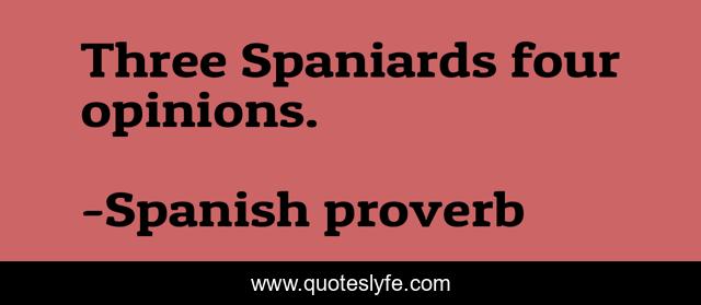 This page presents the quote "Three Spaniards four opinions.". Author of this quote is Spanish proverb. .