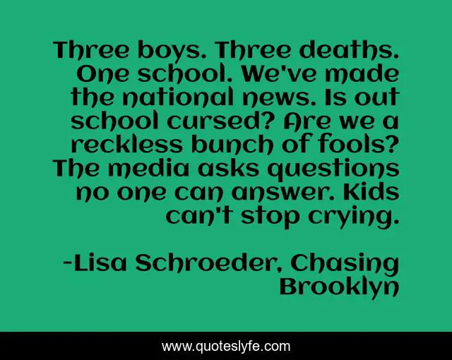 "Lisa Schroeder, Chasing Brooklyn Quotes." Quoteslyfe.com, 2025. Tue. 09 Dec. 2025. <https://www.quoteslyfe.com/quote/Three-boys-Three-deaths-One-school-We-122751>.