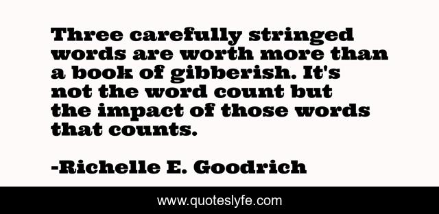 This page presents the quote "Three carefully stringed words are worth more than a book of gibberish. It's not the word count but the impact of those words that counts.". Author of this quote is Richelle E. Goodrich. This quote is about publishing, author, writer, writing, word-count, richelle, words, richelle-goodrich,.