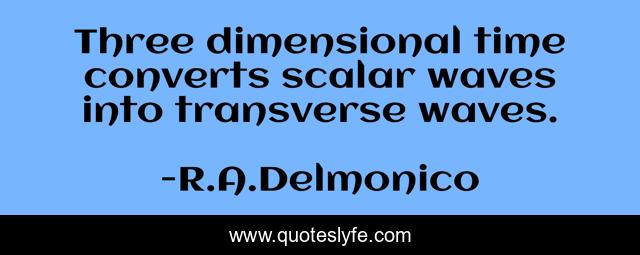 This page presents the quote "Three dimensional time converts scalar waves into transverse waves.". Author of this quote is R.A.Delmonico. This quote is about science, physics,.