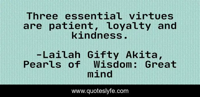 "Lailah Gifty Akita, Pearls of Wisdom: Great mind Quotes." Quoteslyfe.com, 2025. Mon. 08 Dec. 2025. <https://www.quoteslyfe.com/quote/Three-essential-virtues-are-patient-loyalty-and-48279>.