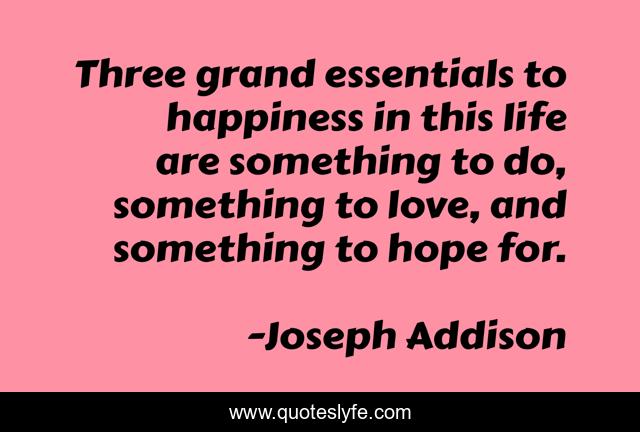 This page presents the quote "Three grand essentials to happiness in this life are something to do, something to love, and something to hope for.". Author of this quote is Joseph Addison. This quote is about life, love, happiness, affection,.