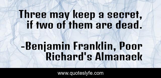 This page presents the quote "Three may keep a secret, if two of them are dead.". Author of this quote is Benjamin Franklin, Poor Richard's Almanack. .