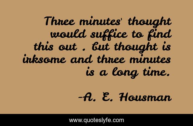 This page presents the quote "Three minutes' thought would suffice to find this out . but thought is irksome and three minutes is a long time.". Author of this quote is A. E. Housman. This quote is about thinking, thought,.
