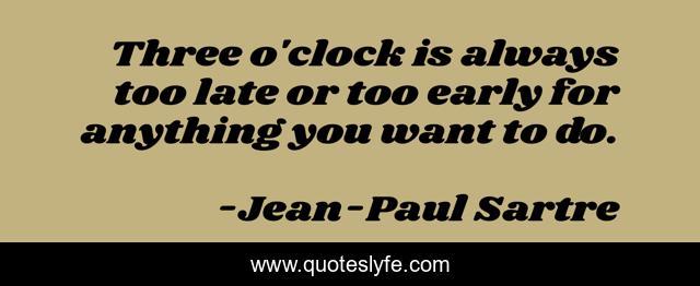 This page presents the quote "Three o'clock is always too late or too early for anything you want to do.". Author of this quote is Jean-Paul Sartre. .
