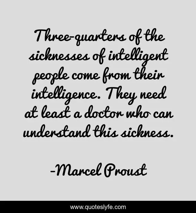 This page presents the quote "Three-quarters of the sicknesses of intelligent people come from their intelligence. They need at least a doctor who can understand this sickness.". Author of this quote is Marcel Proust. This quote is about medical, doctor, people,.