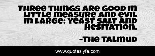 This page presents the quote "Three things are good in little measure and evil in large: yeast salt and hesitation.". Author of this quote is The Talmud. .