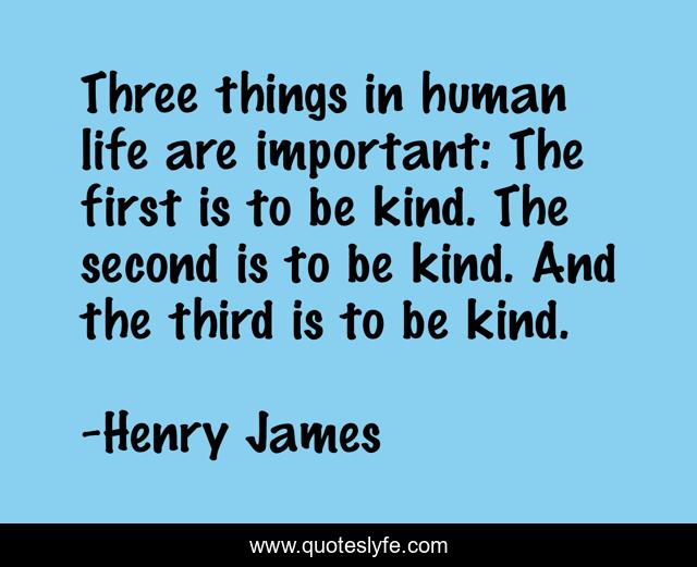 This page presents the quote "Three things in human life are important: The first is to be kind. The second is to be kind. And the third is to be kind.". Author of this quote is Henry James. This quote is about helping, people,.