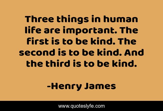 This page presents the quote "Three things in human life are important. The first is to be kind. The second is to be kind. And the third is to be kind.". Author of this quote is Henry James. This quote is about be kind, three, human,.