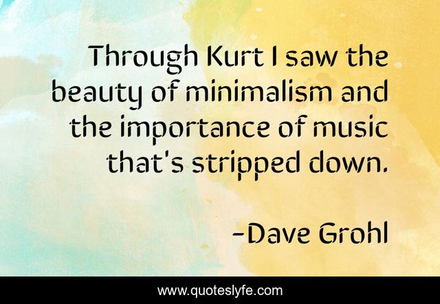 This page presents the quote "Through Kurt I saw the beauty of minimalism and the importance of music that's stripped down.". Author of this quote is Dave Grohl. This quote is about down, music, through,.