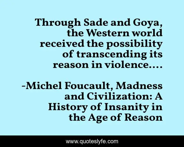 "Michel Foucault, Madness and Civilization: A History of Insanity in the Age of Reason Quotes." Quoteslyfe.com, 2025. Sat. 06 Dec. 2025. <https://www.quoteslyfe.com/quote/Through-Sade-and-Goya-the-Western-world-189710>.