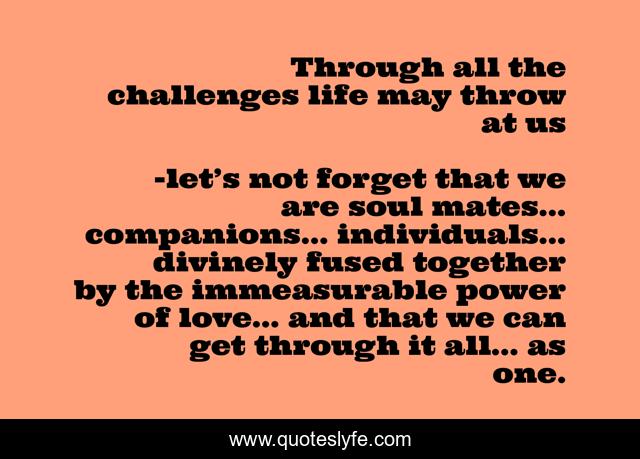 "let’s not forget that we are soul mates… companions… individuals… divinely fused together by the immeasurable power of love… and that we can get through it all… as one. Quotes." Quoteslyfe.com, 2025. Fri. 05 Dec. 2025. <https://www.quoteslyfe.com/quote/Through-all-the-challenges-life-may-throw-197771>.