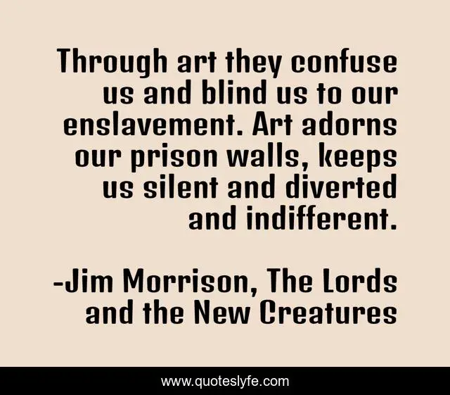 "Jim Morrison, The Lords and the New Creatures Quotes." Quoteslyfe.com, 2025. Fri. 05 Dec. 2025. <https://www.quoteslyfe.com/quote/Through-art-they-confuse-us-and-blind-65798>.