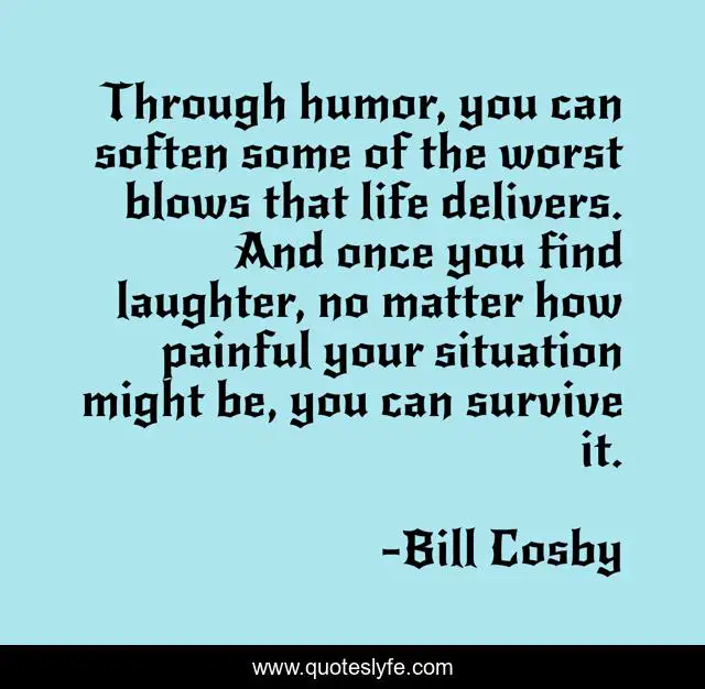 This page presents the quote "Through humor, you can soften some of the worst blows that life delivers. And once you find laughter, no matter how painful your situation might be, you can survive it.". Author of this quote is Bill Cosby. This quote is about strength, humor,.