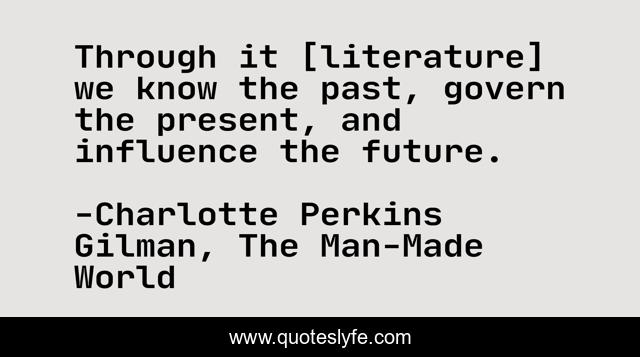 This page presents the quote "Through it [literature] we know the past, govern the present, and influence the future.". Author of this quote is Charlotte Perkins Gilman, The Man-Made World. .