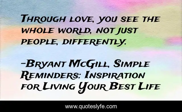 "Bryant McGill, Simple Reminders: Inspiration for Living Your Best Life Quotes." Quoteslyfe.com, 2025. Sat. 06 Dec. 2025. <https://www.quoteslyfe.com/quote/Through-love-you-see-the-whole-world-198675>.