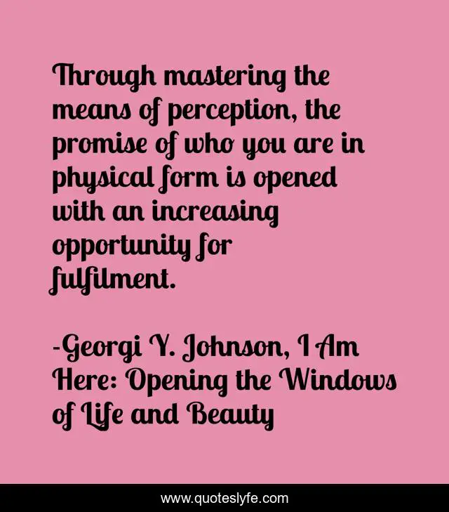 "Georgi Y. Johnson, I Am Here: Opening the Windows of Life and Beauty Quotes." Quoteslyfe.com, 2025. Sat. 06 Dec. 2025. <https://www.quoteslyfe.com/quote/Through-mastering-the-means-of-perception-the-155792>.