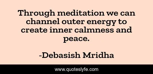 This page presents the quote "Through meditation we can channel outer energy to create inner calmness and peace.". Author of this quote is Debasish Mridha. This quote is about inner-calmness, peace, debasish-mridha, quotes, debasish-mridha-md, inspirational, enthusiasm, outer-energy, meditation,.