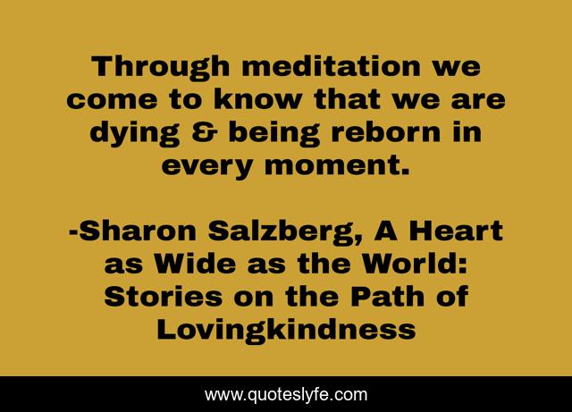 This page presents the quote "Through meditation we come to know that we are dying & being reborn in every moment.". Author of this quote is Sharon Salzberg, A Heart as Wide as the World: Stories on the Path of Lovingkindness. This quote is about buddhism, meditation, inspiration,.