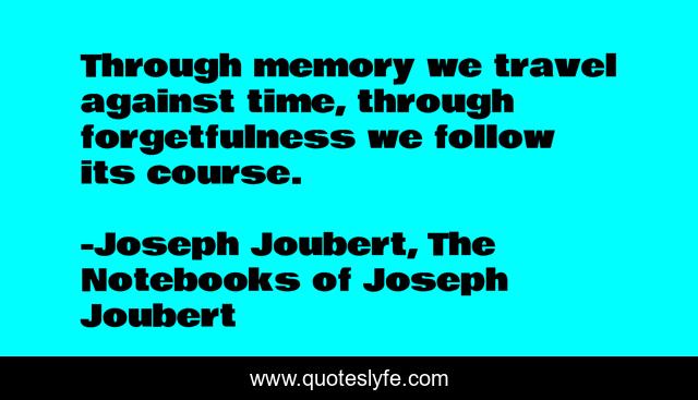 This page presents the quote "Through memory we travel against time, through forgetfulness we follow its course.". Author of this quote is Joseph Joubert, The Notebooks of Joseph Joubert. This quote is about memory, time,.