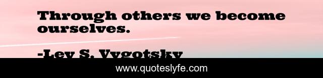 This page presents the quote "Through others we become ourselves.". Author of this quote is Lev S. Vygotsky. This quote is about development, self-awareness, psychology, imitation, educatin, identity,.