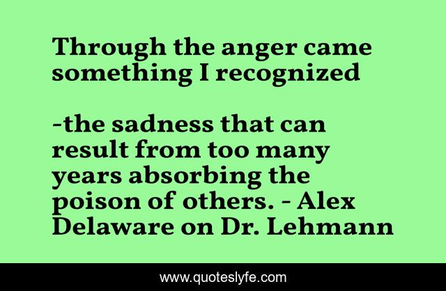 "the sadness that can result from too many years absorbing the poison of others. - Alex Delaware on Dr. Lehmann Quotes." Quoteslyfe.com, 2025. Sat. 06 Dec. 2025. <https://www.quoteslyfe.com/quote/Through-the-anger-came-something-I-recognized-124879>.