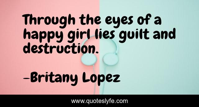 This page presents the quote "Through the eyes of a happy girl lies guilt and destruction.". Author of this quote is Britany Lopez. This quote is about sorrow, guilt, depression, destruction,.