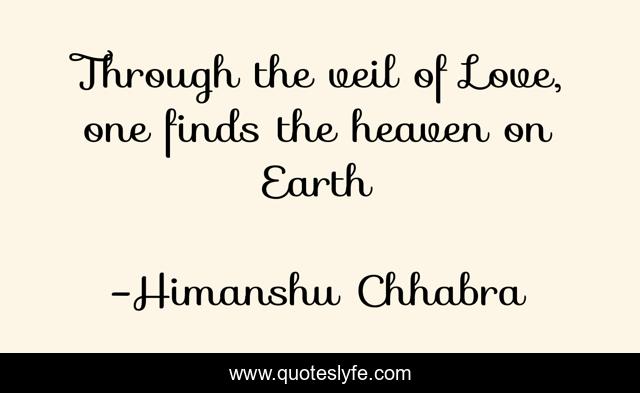 This page presents the quote "Through the veil of Love, one finds the heaven on Earth". Author of this quote is Himanshu Chhabra. This quote is about earth, heaven, love, affection, veil,.