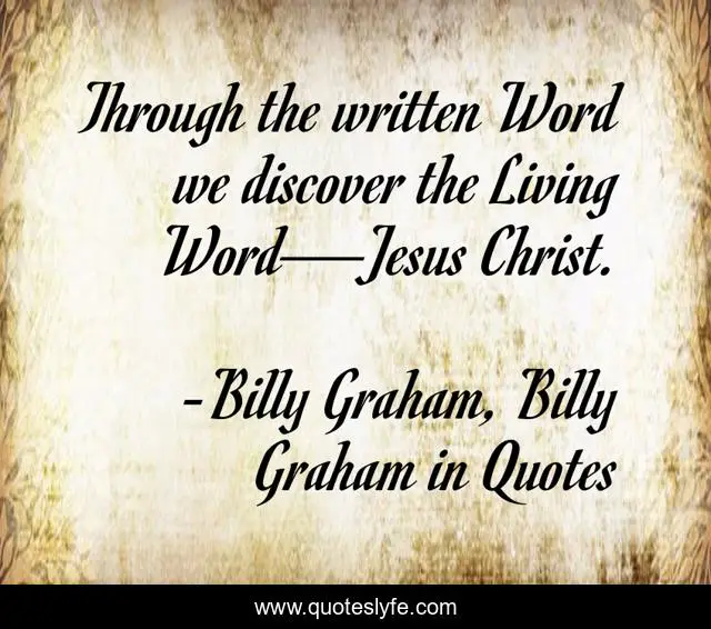 "Billy Graham, Billy Graham in Quotes Quotes." Quoteslyfe.com, 2025. Sat. 06 Dec. 2025. <https://www.quoteslyfe.com/quote/Through-the-written-Word-we-discover-the-152111>.