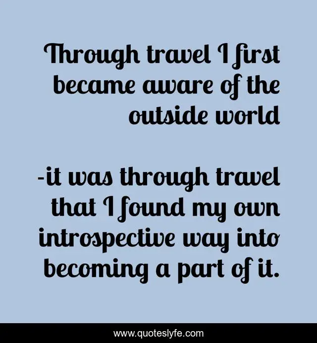"it was through travel that I found my own introspective way into becoming a part of it. Quotes." Quoteslyfe.com, 2025. Sat. 06 Dec. 2025. <https://www.quoteslyfe.com/quote/Through-travel-I-first-became-aware-of-136868>.