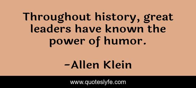 This page presents the quote "Throughout history, great leaders have known the power of humor.". Author of this quote is Allen Klein. This quote is about great, power, history,.